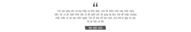 Vụ tai nạn khiến 3 người tử vong và 29 người bị thương. Trong đêm, xe chuyển bệnh nhân bị thương đến bệnh viện, nghe tiếng bệnh nhân khóc lóc, la hét, anh là Phạm Xuân Trường (35 tuổi) đang bán hàng gần đó đã chạy sang để giúp đỡ. Bác sĩ thấy anh chạy đôn chạy đáo chuyển bệnh nhân này chụp CT, lát sau thấy đóng viện phí, ký tên và cho bệnh nhân khác đi truyền máu… Bác sĩ hỏi “Người nhà bệnh nhân à?”, anh lắc đầu.