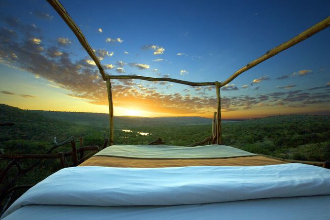 Các nhà nghỉ Loisaba nằm trong khu bảo tồn động vật hoang dã quận Laikipia, Kenya. Du khách có thể đến khu vực này bằng phi cơ riêng của địa phương. Phòng nghỉ ở đây đặc biệt ở chỗ có giường mở nằm hướng ra ngoài không gian tự nhiên và không hề bị che chắn để có thể tận hưởng trọn vẹn khung cảnh châu Phi. Ảnh: Loisaba Conservancy.