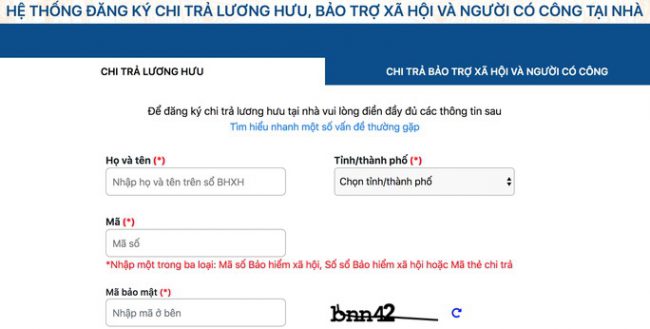 Nếu nhận lương hưu, người dùng chọn cửa sổ Chi trả lương hưu và thực hiện các bước tiếp theo.