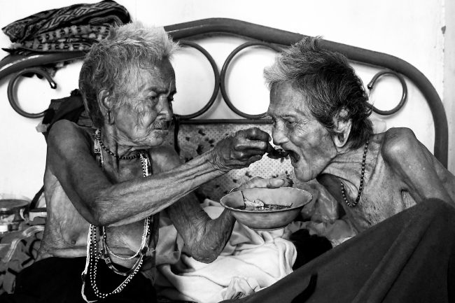 Hình ảnh cụ bà K Lèn (93 tuổi) đút từng muỗng cháo cho cụ ông K Hớt (107 tuổi) đang bị bệnh làm cho tôi xúc động vô cùng, một hạnh phúc quá đơn sơ. Ảnh chụp tại Tà Lài, Đồng Nai ngày 10/10/2019.