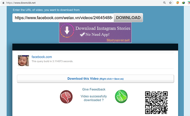 Bước 2: Sao chép (copy) đường link của video mà bạn muốn tải, dán (paste) vào ô Enter Facebook Video Link … rồi bấm nút Download. Trang web sẽ tự truy xuất và chuyển sang trang tải video.