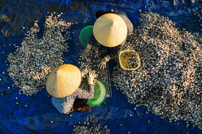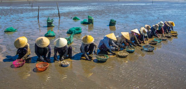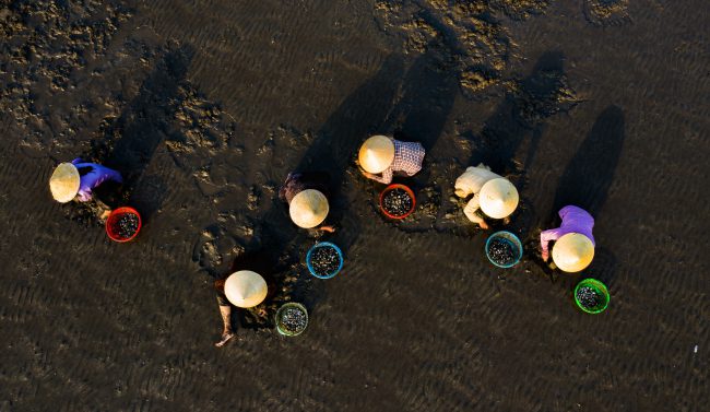 Đây là tấm ảnh được chụp vào lúc 6h36 sáng 19/5/2019 tại bãi nghêu Quỳnh Long,Quỳnh Lưu, Nghệ An. Có khi từ mờ sáng, có khi xế chiều, tùy theo con nước thủy triều mà những người phụ nữ cào nghêu thuê này phải tranh thủ thu hoạch nghêu thương phẩm cho chủ vựa. Nhiều khi chưa xong mà nước lên thì họ vẫn phải ngồi trong nước để làm nốt công việc.