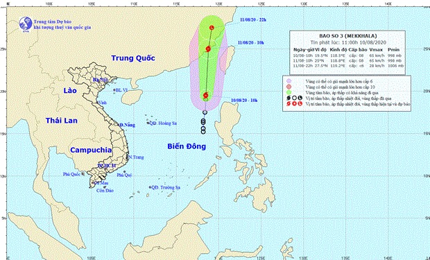 Theo Trung tâm Dự báo Khí tượng Thủy văn Quốc gia, sáng 10/8, áp thấp nhiệt đới trên vùng biển Đông Bắc biển Đông đã mạnh lên thành bão, cơn bão số 3 năm 2020 và có tên quốc tế là Mekkhala.