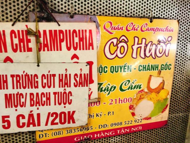 Sài Gòn ti tỉ quán chè lớn nhỏ, hàng rong có, cố định có, miền nào cũng có, chè ngoại cũng có nốt. Chẳng hạn, muốn kiếm quán chè Thái ở thành phố này không khó, thậm chí món này còn vào tận siêu thị. Nhưng quán chè Campuchia thì khó mà tìm ra cái nào khác ngoài quán chè cô Huôi.