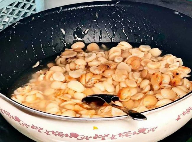 Bà Huôi kể, loại me dùng làm chè là loại người ta hay mua nấu canh chua. Nhưng bà không có nhu cầu lấy “thịt”, tách ra bỏ hết, chỉ lấy hột bên trong, đem rang lên. “Rang cho đen xong thì đập, làm trò Tấm Cám chọn lúa với đậu vậy đó.” Bà Huôi hài hước. “Vỏ đen bỏ, hột già giữ lại. Rồi đem ngâm nước hết mấy ngày, mềm vừa tay mình lột, hoặc lột không được thì lấy dao cạy ra. Xong phải hầm, hầm xong phải rửa vì hột me này nhựa như hột ô môi vậy. Rửa sạch sẽ rồi mới đi nấu nước đường. Mà phải nấu bằng đường thốt nốt mới ngon.”