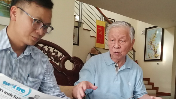 Ông Phạm Chánh Trực trao đổi chia sẻ đóng góp với chương trình “Nước cho vùng hạn mặn”. Ảnh: T.DÂN