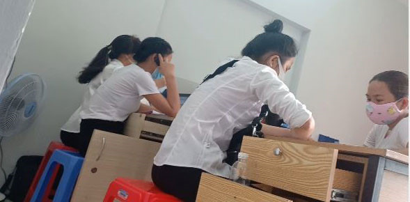 Chúng tôi muốn đi làm ngay, nữ nhân viên yêu cầu phải đặt 500.000 tiền “cọc” mới có hồ sơ đi làm. Chúng tôi nói chỉ mang theo 400.000 đồng, nhưng nhân viên này vẫn thu tiền của PV. Sau khi đóng tiền, chúng tôi được hướng dẫn ra về và hẹn chiều 11/5 gọi vào số 0896520… gặp quản lý tên Thiện để được hướng dẫn nhận việc. Chúng tôi được Thiện hướng dẫn đến địa chỉ 22 đường số 13, xã Phong Phú, H.Bình Chánh để nhận đồng phục.