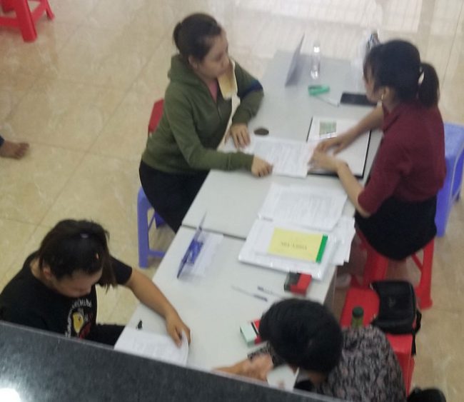 “Ca 8 tiếng lương tối thiểu 7,2 triệu đồng; ca 10 tiếng lương tối thiểu là 8,7 triệu đồng”, nữ nhân viên tư vấn. Nữ nhân viên này tiếp tục yêu cầu chúng tôi nộp 500.000 đồng tiền “quỹ trách nhiệm” với 2 bộ đồng phục. Đi cùng chúng tôi có 2 nữ lao động thắc mắc về tiền ký quỹ thì được nữ nhân viên này gạt ngang và quát: “Phí sau khi thu sẽ giữ luôn, không trả lại. Nãy giờ chị có nói câu nào là thu phí hay không vậy? Bên mình chỉ là cọc thôi, không phải là thu phí”.