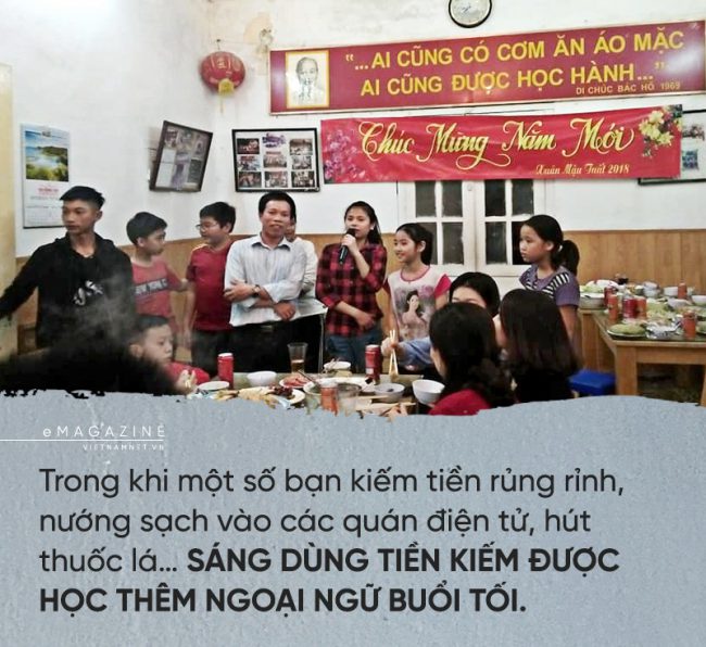 Trong khi một số bạn kiếm tiền rủng rỉnh, nướng sạch vào các quán điện tử, hút thuốc lá… anh dùng tiền kiếm được học thêm ngoại ngữ buổi tối.