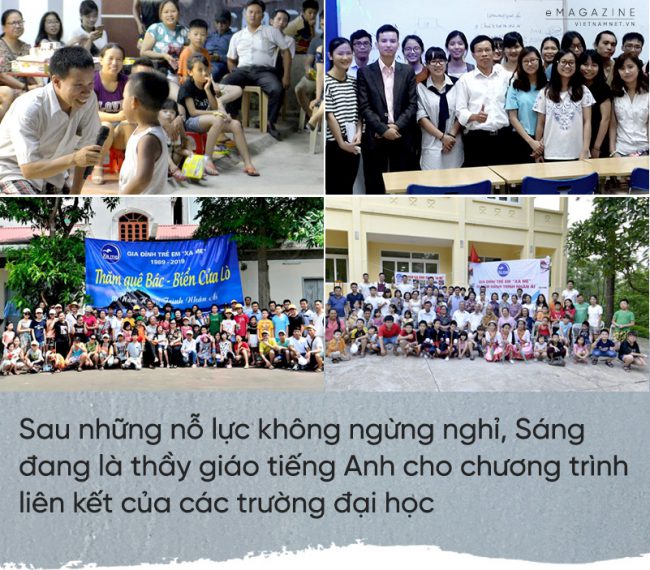 Sau này, anh Sáng được nhiều trung tâm, trường đại học mời về giảng dạy tiếng Anh trong các chương trình liên kết đào tạo. Ngoài ra, anh phụ trách mảng khách hàng cho một công ty du lịch.