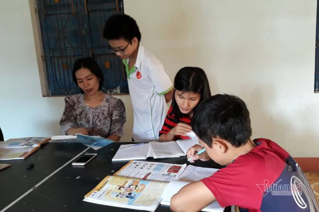 Lớp học của chị không đông nhưng khá lộn xộn, chị cười tâm sự rằng: “Lớp chỉ có 7 học sinh mà thuộc 2 cấp trung học cơ sở và THPT. Trong đó, 2 học sinh cấp THPT (lớp 10 và lớp 11) và có 5 em thuộc trường trung học cơ sở (1 học sinh lớp 9, 1 học sinh lớp 7 và 3 học sinh lớp 6).