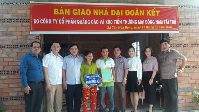 Sáng ngày 21/2/2020, đại diện Công ty CP quảng cáo và xúc tiến thương mại Đông Nam – Giám đốc ông Nguyễn Thanh Đảo cùng đại diện Công ty TNHH sản xuất – thương mại – quảng cáo Cường Khanh – Giám đốc ông Phạm Ngọc Cường đã trao tặng nhà Đại đoàn kết tại xã Tân Hòa Đông, huyện Tân Phước, tỉnh Tiền Giang.