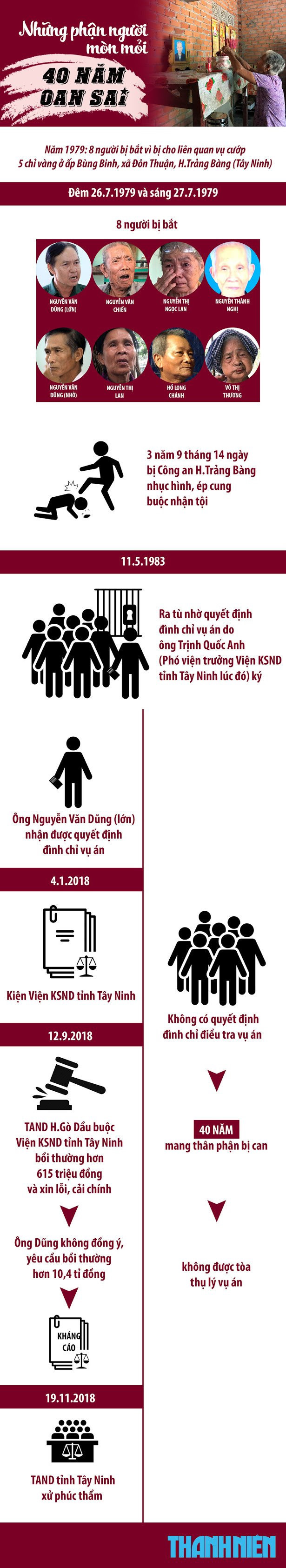 Viện KSND tỉnh Tây Ninh xin lỗi công khai 7 nạn nhân bị oan sai Sáng 31/10, Viện KSND tỉnh Tây Ninh tổ chức buổi xin lỗi công khai 7 nạn nhân trong vụ án oan sai cách đây 40 năm ở Tây Ninh. Buổi xin lỗi diễn ra tại UBND xã Đôn Thuận, H.Trảng Bàng, địa phương xảy ra vụ án oan sai. Bảy người được xin lỗi gồm những ông bà: Nguyễn Thành Nghị (sinh năm 1918, đã mất), Võ Thị Thương (94 tuổi), Nguyễn Văn Chiến (66 tuổi), Nguyễn Văn Dũng (Dũng nhỏ, 58 tuổi), Nguyễn Thị Ngọc Lan (73 tuổi), Nguyễn Thị Lan (66 tuổi), Hồ Long Chánh (67 tuổi). Trong tháng 10/2019, Viện KSND tỉnh Tây Ninh đã đăng báo xin lỗi những nạn nhân này trong 3 kỳ liên tiếp trên Báo Thanh Niên và Báo Tây Ninh. Trước đó, Báo Thanh Niên có loạt bài phản ánh vụ việc 8 người ở Tây Ninh bị bắt giam oan sai 40 năm trước. Sau đó, Viện KSND tỉnh Tây Ninh trao quyết định đình chỉ vụ án cho các nạn nhân và đây chính là cơ sở để các nạn nhân đòi quyền lợi cho mình. Trong số 8 nạn nhân, ông Nguyễn Văn Dũng (Dũng lớn, 61 tuổi) đã được Viện KSND tỉnh Tây Ninh công khai xin lỗi và bồi thường 615 triệu đồng. |