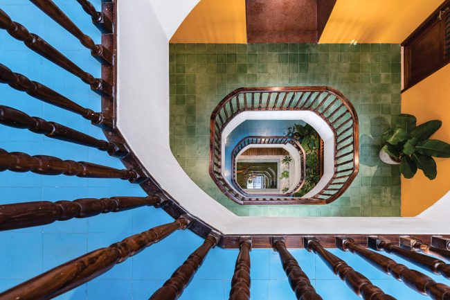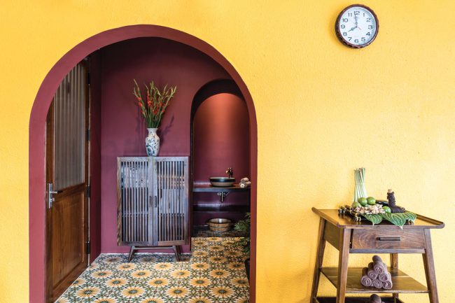 Sắc màu từ chất liệu tự nhiên của đá và gỗ, hay từ độ hoàn thiện thủ công tinh xảo của đá mài truyền thống, gạch bông xi măng; màu sắc tương phản và chuyển tiếp… tất cả được vận dụng xuyên suốt cho quá trình phân chia từng không gian chức năng, phân chia sự chung riêng, phân vùng và chuyển tiếp sáng – tối liên tục theo chiều đứng cũng như theo phương ngang xuyên suốt toàn bộ công trình.