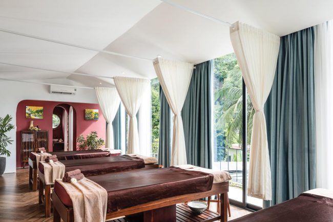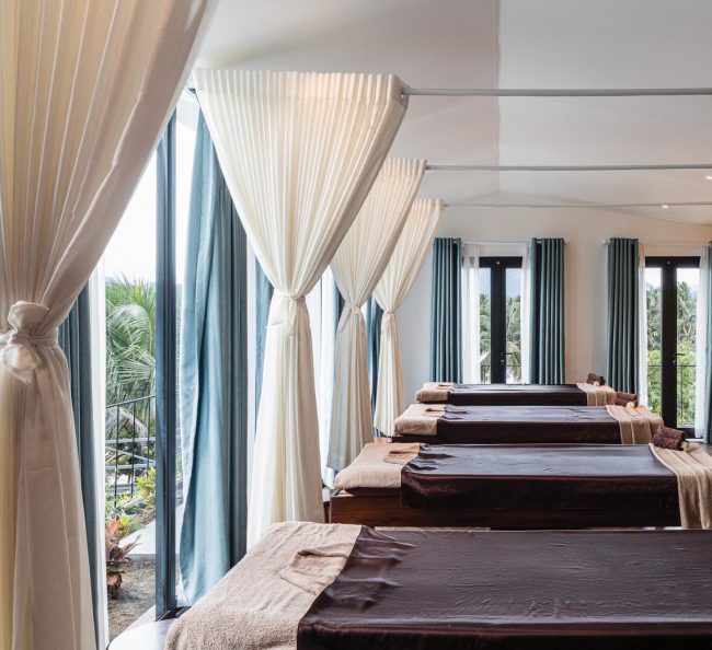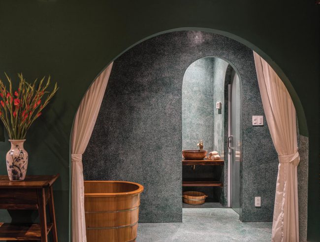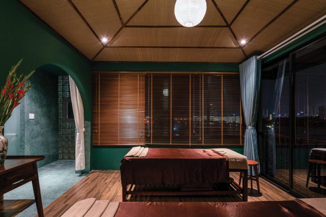 Không gian được cắt lớp và đóng mở liên tục theo từng bước chân của người di chuyển. Cảm giác về sáng – tối, về âm thanh, về gió, về sắc màu của vật liệu và thiên nhiên mang đến những trải nghiệm giàu xúc cảm cho khách đến tận hưởng dịch vụ ở đây. Mọi thứ như một hành trình thú vị của giác quan trước khi thả mình thư giãn và ngắm nhìn vẻ đẹp của dòng sông thơ mộng trong không gian trị liệu spa.