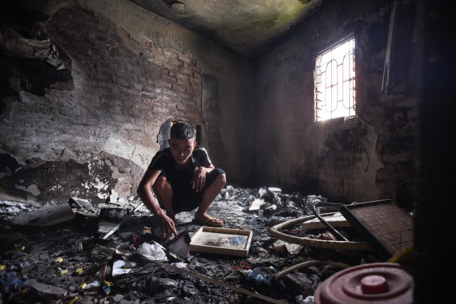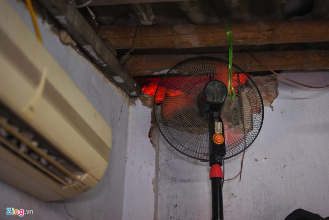 Căn phòng nhỏ của 2 công nhân chở vật liệu xây dựng là ông Lực và ông Liên chỉ cách hiện trường vụ cháy 2 bức tường. Phần nóc cũng vì đám cháy mà bục một lỗ hổng trên tường thông về phía đống đổ nát của đám cháy. Ba chiếc quạt trong nhà phải hoạt động 24/24h trong căn phòng để làm giảm bớt mùi khét, riêng lỗ hổng trên kia được đặt một chiếc quạt thổi ngược ra để ngăn mùi xộc qua.