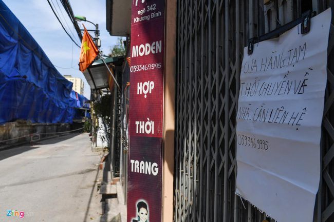 Hầu như ai qua lại cũng đi thật nhanh. Mười người thì tám người đeo khẩu trang, cảnh chưa từng thấy trong con ngõ từng khá nhộn nhịp với cảnh giao thương mua bán này. Ở đây có đủ loại hình kinh doanh, từ cửa hàng thời trang, tiệm cắt tóc gội đầu, nha khoa, nhà hàng ăn uống… Vậy mà giờ đã trôi dạt đi đâu hết, chỉ còn lại những tấm biển quảng cáo.