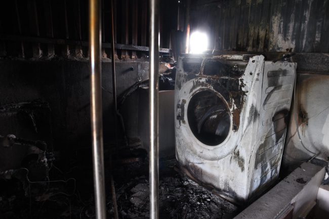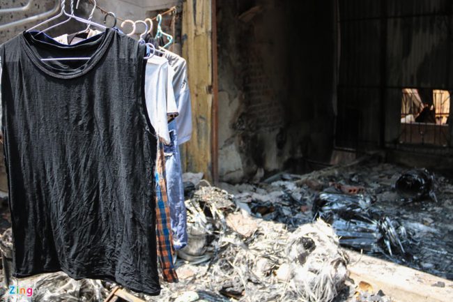 Căn phòng nhỏ của 2 công nhân chở vật liệu xây dựng là ông Lực và ông Liên chỉ cách hiện trường vụ cháy 2 bức tường. Phần nóc cũng vì đám cháy mà bục một lỗ hổng trên tường thông về phía đống đổ nát của đám cháy. Ba chiếc quạt trong nhà phải hoạt động 24/24h trong căn phòng để làm giảm bớt mùi khét, riêng lỗ hổng trên kia được đặt một chiếc quạt thổi ngược ra để ngăn mùi xộc qua.