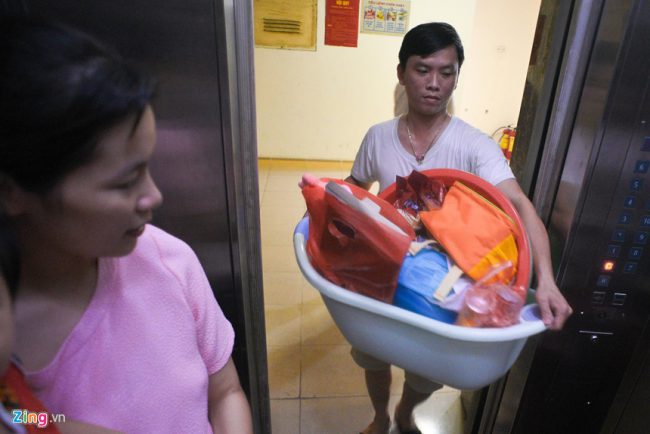 “Chiều nay tôi mới tìm thuê được một căn chung cư ở Lê Văn Lương với giá 9 triệu mỗi tháng, giờ sẽ chuyển đi ngay”, anh nói rồi khệ nệ bê ôm chiếc nồi cơm điện và vài món đồ bước vào thang máy.