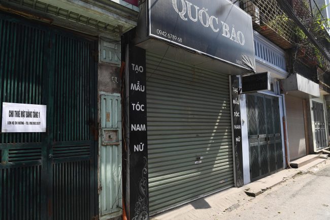 Hầu như ai qua lại cũng đi thật nhanh. Mười người thì tám người đeo khẩu trang, cảnh chưa từng thấy trong con ngõ từng khá nhộn nhịp với cảnh giao thương mua bán này. Ở đây có đủ loại hình kinh doanh, từ cửa hàng thời trang, tiệm cắt tóc gội đầu, nha khoa, nhà hàng ăn uống… Vậy mà giờ đã trôi dạt đi đâu hết, chỉ còn lại những tấm biển quảng cáo.