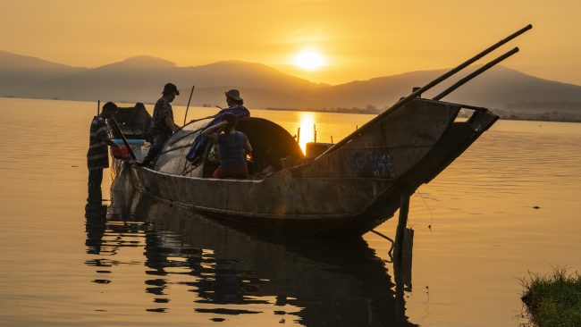 Ảnh chụp ở đầm Quảng Lợi, thôn Ngư Mỹ Thạnh, xã Quảng Lợi, huyện Quảng Điền, tỉnh Thừa Thiên – Huế  vào tháng 3/2019. Người dân thôn Ngư Mỹ Thạnh từ bao đời chủ yếu sống trên các con đò. Sau một đêm đánh bắt cá trên phá Tam Giang, họ vào bờ để mua các nhu yếu phẩm và các vật dụng cần thiết cho cuộc sống. Và tất nhiên muốn vào bờ họ đi trên những chiếc ghe con. Trong ảnh là cảnh một phụ nữ được chồng đưa vào bờ để đi chợ. Cuộc sống của họ cứ thế chậm rãi trôi đi!