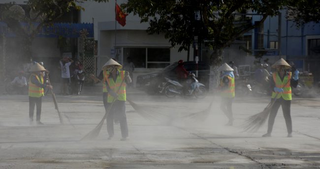 Ảnh được chụp dịp Lễ hội dừa Bến Tre ở thành phố Bến Tre, tỉnh Bến Tre vào tháng 11/2019, ghi nhận công việc thầm lặng của các anh, chị công nhân đang khẩn trương quét dọn sạch đẹp để chuẩn bị cho buổi lễ khai mạc Lễ hội dừa Bến Tre.