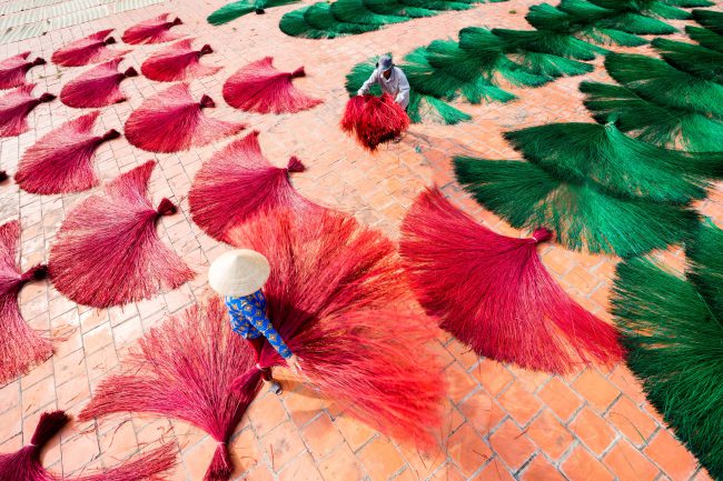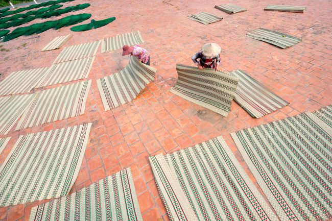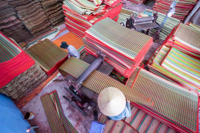Hình dự thi được chụp ở làng chiếu Định Yên, Đồng Tháp vào những ngày giáp Tết 2019 (21/01/2019). Trong xưởng dệt và ngoài sân các anh, các chị đang hối hả làm việc để kịp hàng chuẩn bị Tết.