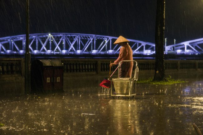 Ảnh chụp ngày 02/09/2019 tại Huế. Trời mùa mưa lạnh, người công dân vẫn quét dọn, làm công việc thường nhật hàng ngày của mình.