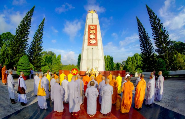 Qúy thầy thắp nhang tri ân ở nghĩa trang liệt sĩ TP Long Khánh nhân ngày giỗ các chiến sĩ đặc công. Ảnh chụp tại nghĩa trang liệt sĩ TP Long Khánh tháng 5/2019.