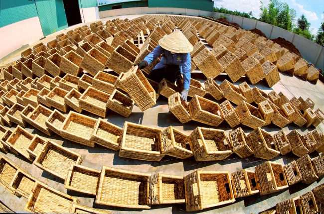 Từ cây lục bình qua bàn tay của các nghệ nhân đã trở thành những sản phẩm mỹ nghệ xuất khẩu có giá trị. Ảnh chụp tháng 5/2019 tại Định Quán – Đồng Nai.