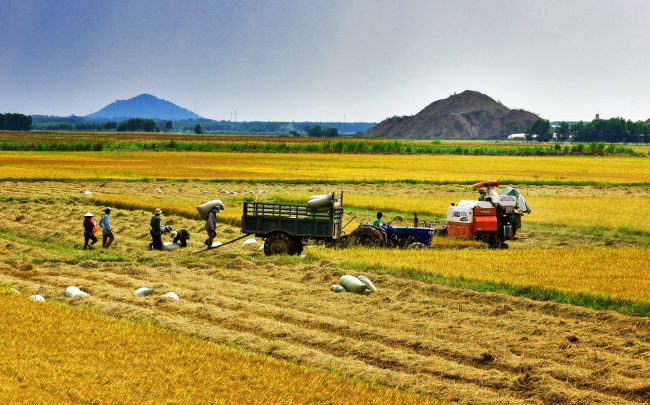 Với những tiến bộ của công nghệ nông nghiệp, giúp năng suất tăng cao và người nông dân bớt vất vả. Ảnh chụp tháng 3/2019 tại huyện Tánh Linh – Bình Thuận.