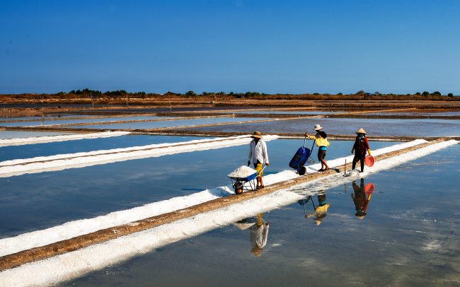 Một cảnh trong việc thu hoạch muối của diêm dân Hàm Tân – Bình Thuận. Ảnh chụp tháng 5/2019.