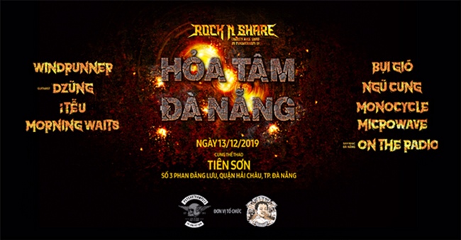 Cũng đã khá lâu, khán giả yêu nhạc miền Trung mới có dịp thưởng thức một bữa tiệc dành riêng cho rock, sắp diễn ra vào tuần tới, tại Đà Nẵng, mang tên Rock’n’Share 2019 Hoả Tâm Đà Nẵng.