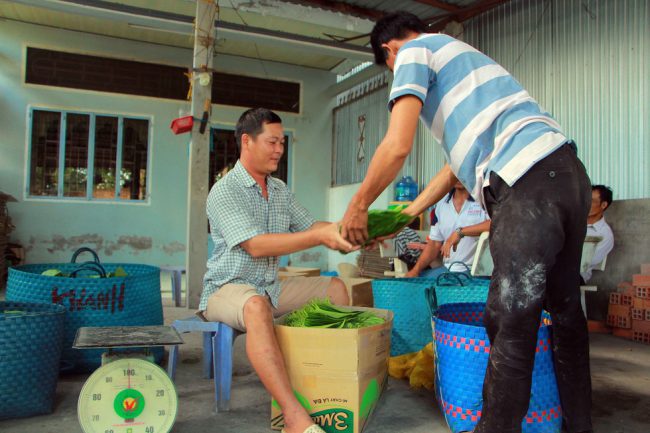 Trầu sau khi thu hoạch sẽ được xếp thành ốp (mỗi ốp 40 lá) rồi bán cho thương lái với giá 2.500 – 6.000 đồng/ốp, tùy thời điểm.