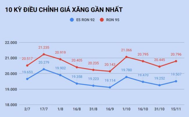 Chiều 15/11, liên Bộ Tài chính – Công Thương quyết định điều chỉnh giá bán lẻ xăng dầu theo chu kỳ 15 ngày/lần.