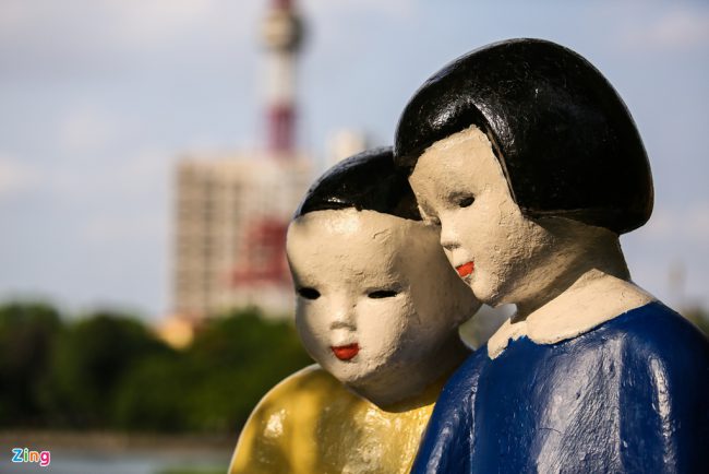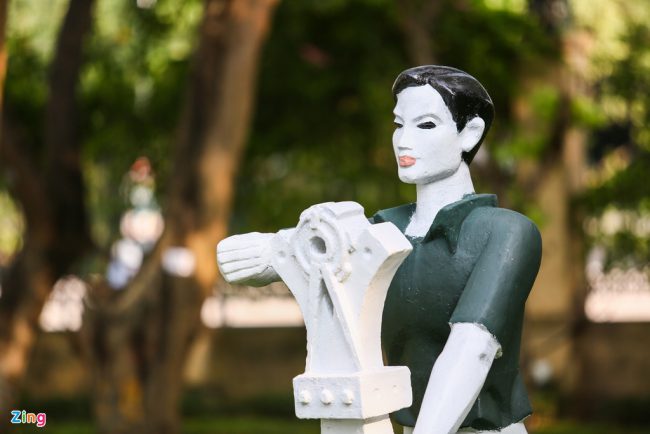 Hàng loạt bức tượng lâu năm ở công viên Thống Nhất đổi màu lòe loẹt