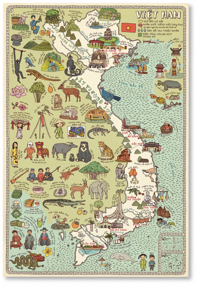 Vừa qua, sách tranh Bản đồ của 2 tác giả – họa sĩ Ba Lan Aleksandra Mizielińska và Daniel Mizieliński (đã xuất bản tại hơn 30 quốc gia) được Nhã Nam và NXB Lao động phát hành tại Việt Nam, Quỳnh Chi dịch. Theo đó, khi Nhã Nam mua bản quyền, bản đồ Việt Nam được 2 tác giả vẽ với sự hỗ trợ và kiểm chứng thông tin của biên tập viên Nhã Nam, thể hiện rõ chủ quyền của Việt Nam đối với Biển Đông và 2 quần đảo Hoàng Sa, Trường Sa. Phía Nhã Nam cho biết phần bản đồ Việt Nam này, các họa sĩ mất hơn 6 tháng để hoàn thiện. Các chữ “bản đồ”, phần tên các châu lục, tên nước… ở các trang trong phiên bản tiếng Việt đều được tác giả tự vẽ bằng tay. |