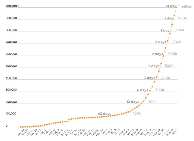 Đại dịch Covid-19 ngày càng diễn tiến tệ hơn trên toàn thế giới, khiến hơn 1 triệu người nhiễm bệnh và hơn 53.000 người tử vong.