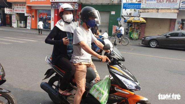 Sống ở quận Gò Vấp (TP.HCM), cô Phạm Thị Thu Hà cùng con trai chạy xe máy qua quận 3 mua 1 hộp khẩu trang y tế với giá 100.000 đồng.
