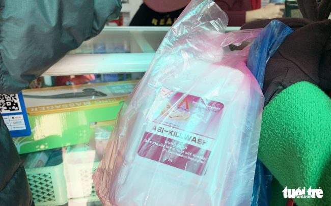 Khảo sát của Tuổi Trẻ Online tại một số nhà thuốc trung tâm thành phố ngày 31-1 cho thấy nhu cầu của người dân về khẩu trang y tế, dung dịch sát khuẩn lớn, vượt quá khả năng cung ứng. Dù giá bán đội cao hơn ngày thường nhiều lần, hầu hết các nhà thuốc đều cháy hàng hai mặt hàng này.