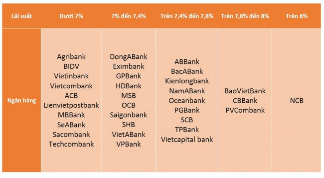 Nhiều ngân hàng khác niêm yết lãi tiền gửi kỳ hạn 6 tháng trên 7% hiện nay như NCB 7,6%; BacABank 7,5%; BaoVietBank 7,4%; PGBank 7,3%; PVCombank, Ocb 7,2%; hay DongABank, Kienlongbank cùng 7%…