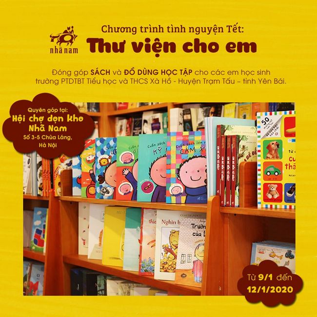Dọn kho đón Tết 2020 cũng đánh dấu hành trình đầu tiên của chương trình Thư viện cho em – thu nhận sách và đồ dùng học tập cho điểm đến đầu tiên: trường PTDTBT Tiểu học và THCS Xà Hồ, huyện Trạm Tấu, tỉnh Yên Bái. (Địa điểm nhận quyên góp: Học viện thanh thiếu niên Việt Nam, số 3 – 5 Chùa Láng, Hà Nội). Số sách quyên góp trong dịp này sẽ trao tận tay cho Ban giám hiệu nhà trường trước Tết Nguyên Đán Canh Tý 2020.
