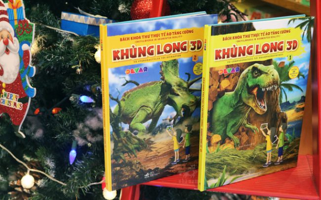 Mảng sách thiếu nhi, phải kể đến sự xuất hiện của Bách khoa thư thực tế ảo tăng cường: Khủng long 3D – bộ sách đầu tiên tại Việt Nam ứng dụng công nghệ AR – công nghệ hiện đại nhất được ứng dụng trong ngành xuất bản, giúp biến những hình ảnh 2D trong sách thành hình khối 3D chân thực cùng âm thanh sống động. Với Bách khoa thư thực tế ảo tăng cường: Khủng long 3D, các bạn nhỏ không những được tìm hiểu chi tiết về khủng long qua các hoạt động nuôi khủng long, cho khủng long ăn… mà còn có thể đóng vai các nhà thám hiểm, các nhà cổ sinh vật học khai quật hài cốt, nghiên cứu thói quen, tập tính và môi trường sống của chúng với các trò chơi tích hợp sẵn trong sách.