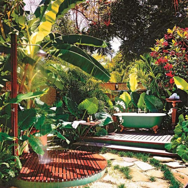 Mặt khác, một số yếu tố khi mang ra sân vườn lại rất cần cấu trúc phân định không gian, nhưng vẫn đảm bảo sự hòa nhập vốn dĩ phải có, như một nhà tắm lộ thiên, thậm chí… toilet ngoài trời là thứ có thể bắt gặp ở vài công trình cảnh quan phá cách.