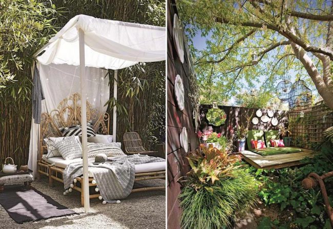 Nhưng chúng không nhất thiết được định nghĩa như một “căn phòng” theo đúng kiểu thường thấy – không gian được ngăn cách bởi các bức tường, mà thay vào đó là cây trồng và các cấu trúc, chẳng hạn như pergola, cây bụi, hàng rào, hay vài biện pháp tạo không gian “mờ” như nâng cốt, đổi vật liệu lát,…