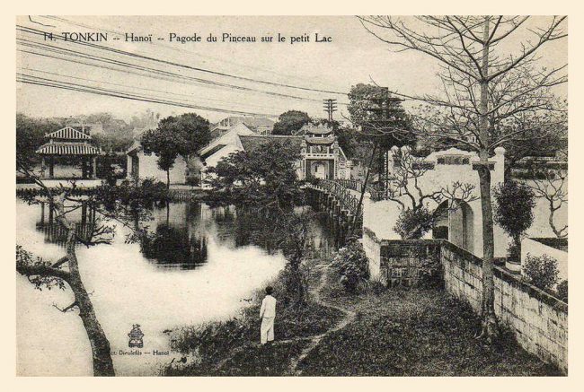 Toàn cảnh đền Ngọc Sơn ở Hà Nội thời thuộc địa. Đền Ngọc Sơn lịch sử hình thành từ thời Lý, được xây lại vào thế kỷ 19, là ngôi đền nổi tiếng bậc nhất Hà Nội.