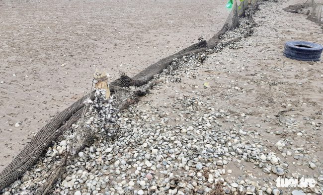 Những ngày gần đây, bà con xã Nghi Thiết – nơi nuôi nhiều ngao nhất ở huyện Nghi Lộc, Nghệ An xót xa nhìn xác ngao chết bị sóng đánh dạt thành những cồn dài trắng xóa.
