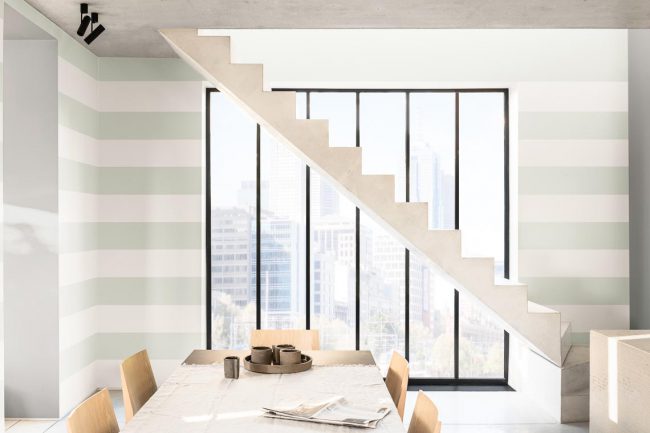 Đôi khi chỉ cần một không gian tĩnh lặng vừa phải, bình yên vừa phải để nhâm nhi chén trà, tâm sự vài câu chuyện là đã đủ sau một ngày mệt nhoài. Trang trí nhà bằng những gam màu thanh nhã, bạn sẽ dễ dàng xây đắp những mối quan hệ ý nghĩa: quan hệ với bản thân, với người thương, với thiên nhiên, với tổ ấm và với môi trường nhân tạo xung quanh. Sự kết hợp tinh giản của các tông màu trung tính nhẹ nhàng, cùng với màu Xanh Ban Mai mang đến chân trời mờ sương một sáng mùa xuân – nơi các sắc màu của bình minh hòa quyện vào nhau.