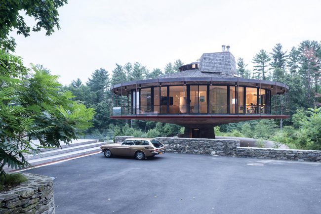 Nhà tròn tọa lạc trên một khu đất rộng khoảng 1,62 hécta ở Wilton, một thị trấn nhỏ ở phía tây nam tiểu bang Connecticut. Ngôi nhà có kiến trúc đặc biệt này được hoàn thành vào năm 1968 bởi kiến trúc sư – kỹ sư Richard T Foster, cùng làm việc với ông còn có Mies van der Rohe và Philip Johnson.