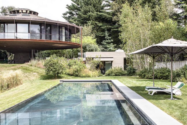 Công ty Mack Scogin Merrill Elam Architects của Mỹ được thuê để cải tạo một dự án đặc biệt: ngôi nhà tròn có thể xoay 360 độ, xây thêm một ngôi nhà nhỏ gần hồ bơi. Họ đã làm hài lòng gia chủ khi hoàn thành dự án với những yêu cầu được đưa ra.
